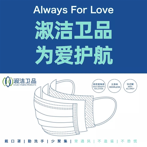 淑潔衛品二十年專注衛品護理,老品牌,可信賴。這次更是積極響應全民抗“疫”的號召,開發投產全新產品一次性口罩。 淑潔衛品,為愛護航! 聯系方式:電話/...