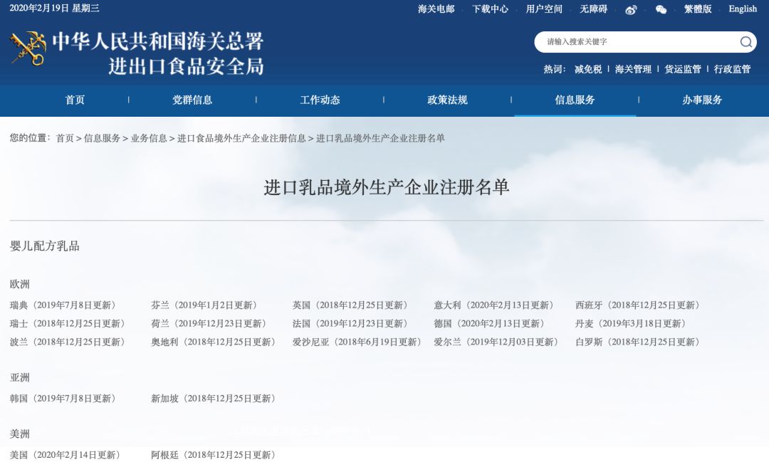 近日,多家境外嬰幼兒配方奶粉工廠等來了好消息。 2月13日和14日,海關(guān)總署在官網(wǎng)更新了進口乳品境外生產(chǎn)企業(yè)注冊名單。其中,在嬰幼兒配方乳品境外生產(chǎn)企業(yè)方面,意大利、德國和美...