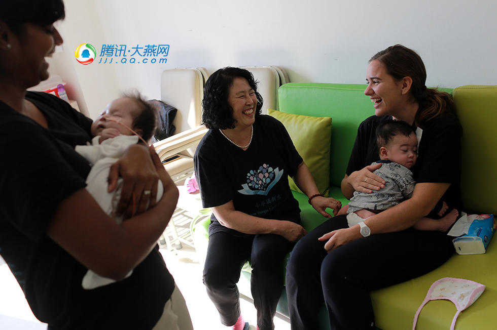 來自 騰訊大燕網(wǎng) 中國嬰童招商網(wǎng) 來自美國的21歲女孩Mary(右)和中國大媽們一起做義工,照顧在北京京都兒童醫(yī)院醫(yī)治的棄嬰。Mary今年8月剛剛來到北京,如果懂英語的同事不在,Mary和中國大媽義工們交流很多時候需要比劃猜測。這樣的交流不但沒有讓Mary的工作尷尬,反而給枯燥和辛苦的嬰幼兒護理工作增添了快樂和輕松感。在北京小水滴新生兒護理區(qū),Mary同義工志愿者們?yōu)榛疾〉墓聝杭袄Ь臣彝セ純禾峁┽t(yī)療救助、術(shù)前術(shù)后護理,并為困境家庭提供多方位支持及愈后回訪等服務(wù)工作。