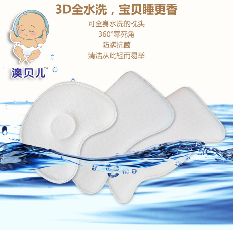 4. 安全可靠,科澳貝兒全水洗3D嬰童枕科學的將枕芯和枕套做成一體,使用更方便,清洗更容易。表層采用雙層全棉空氣層,可直接和嬰幼兒皮膚接觸,對皮膚無刺激和過敏等現象,吸濕性更強,透氣性更好,柔軟且舒適度好,讓寶寶安睡一整夜。澳貝兒3D嬰童枕也時刻確保您的寶寶在睡眠或者躺臥時的安全,產品源于一個簡單的創意和獨特的設計,網狀穿孔的高科技原料,可以均勻支持寶寶頭部的全部重量,簡單并有效,從而避免了扁頭綜合癥的發生,對于已經產生變形的寶寶,澳貝兒嬰兒枕頭可以幫助更快的矯正畸形,我們采用的是特殊的面料,對您的寶寶100%安全。 |