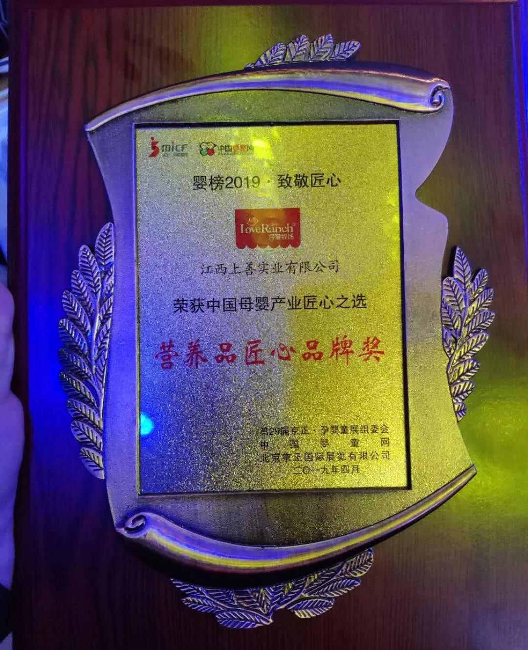 4月26日,“嬰榜2019·中國母嬰產業匠心之選”頒獎盛典在北京隆重舉行,江西上善實業有限公司-嬰童部門深愛牧場榮獲中國母嬰產業匠心營養品牌。
