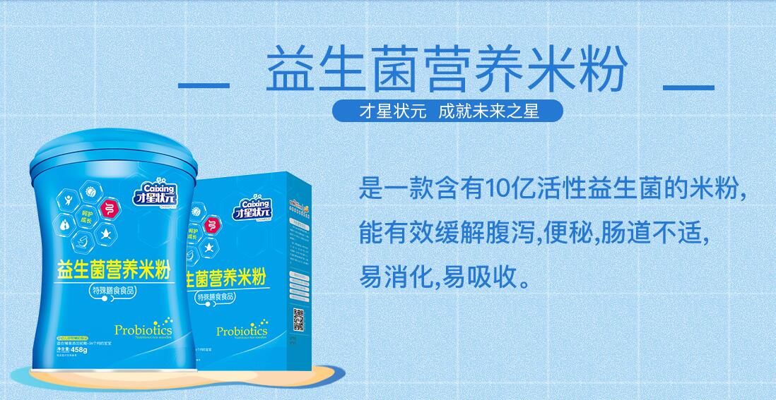 1.益生菌米粉:    是一款含有10億活性益生菌的米粉,能有效緩解腹瀉,便秘,腸道不適,易消化,易吸收。