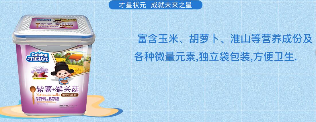 才星狀元品牌是新干縣狀元食品有限公司旗下品牌之一,公司集產品研發、生產、銷售與服務為一體。生產間采用了10萬級空氣凈化系統,生產技術和衛生條件均通過國家食品生產許可證SC認證。在生產過程中精心挑選原輔材料,確保原輔材料的安全、新鮮、天然以及生產過程無污染,在產品質量上精益求精,確保產品符合國家食品安全質量標準,為消費者提供高品質、安全衛生、營養豐富的食品。