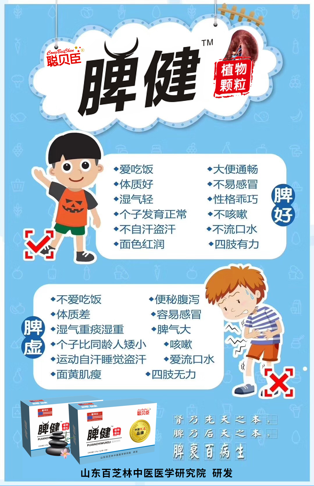 營養品已成母嬰市場趨勢,想要產品賣得火!就選有品質保證的產品!聰貝臣脾健,品質好,實力強,賣點足,顏值高,終端市場高度認可,市場走量大,動銷快,想要入局營養品市場,你怎能錯過呢,趕快聯系我們吧!