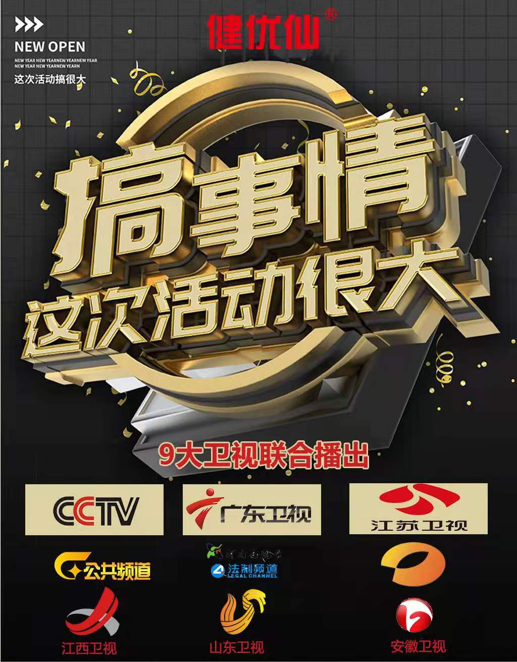 新的一年開啟新的希望,新的空白承載新的夢想!嶄新的2020年,“健優仙”的“開年大戲”已正式拉開帷帷幕,央視等9家衛視及多家網絡媒體的推廣活動也已激情開拔,想要制勝2020年營養保健品市場的你豈可錯過它?攜手“健優仙”,開啟無限商機,共贏美好未來! |
