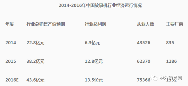 目前中國故事機(jī)占全球生成比重的71.2%,年產(chǎn)值達(dá)到38.2億元,其中最大的生成基地為中國汕頭市。汕頭市從事電子兒童早教故事機(jī)的生產(chǎn)廠家一般是大型正規(guī)企業(yè),特別是位于澄海區(qū)的公司,聚集了國內(nèi)絕大多數(shù)的玩具龍頭企業(yè)。根據(jù)中為咨詢數(shù)據(jù)資料,全國5家玩具上市公司有4家來自汕頭,70%以上的玩具產(chǎn)品銷往世界140個(gè)國家和地區(qū)。2015年終故事機(jī)行業(yè)銷售額為43.6億元,從業(yè)人數(shù)達(dá)到62370人,生產(chǎn)廠商達(dá)到1286家。