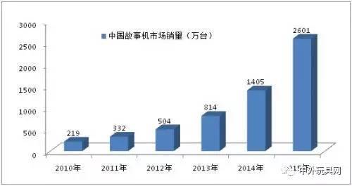 “故事機(jī)”依然是0-6歲玩具市場(chǎng)的一個(gè)“強(qiáng)”剛需,是一個(gè)孩子喜歡,家長開心的產(chǎn)品。2015年中國故事機(jī)銷量為2601萬臺(tái)。