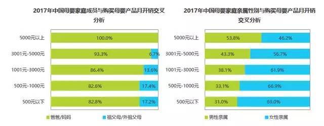 祖父母們成母嬰消費輔助力量,高額消費以男性親屬為主 母嬰家庭中,爸爸媽媽是購買母嬰產品的主力軍,占比達到80%以上,祖父母/外祖父母只是母嬰產品購買的輔助力量;同時,伴隨著母嬰產品月開銷的上升,爸爸媽媽的占比不斷提高,高額母嬰月開銷基本都來自于消費理念、育兒理念雙升級的年輕一代爸爸媽媽。 此外,低額母嬰產品月開銷以女性親屬為主,占比為69.0%,但伴隨著母嬰產品月開銷的不斷上升,男性親屬的購買力逐漸凸顯,反轉成為購買母嬰產品的主要力量。母嬰產品月開銷5000元以上的群體中,男性親屬占比達到53.8%。