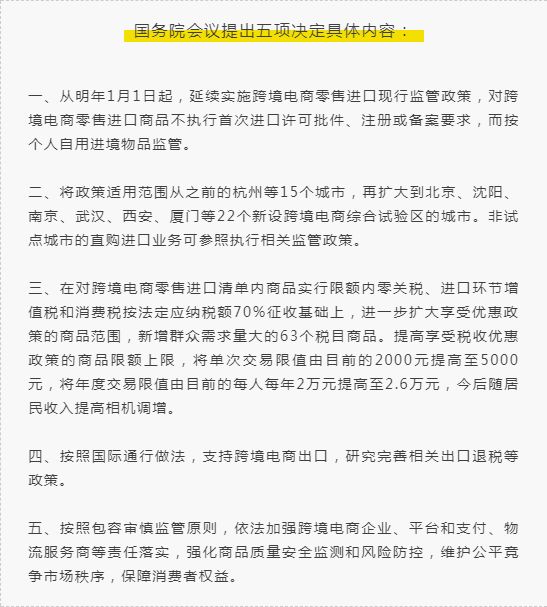 近年來,消費者對嬰幼兒配方奶粉日益關注,而進口產(chǎn)品更是受到消費者“青睞”,根據(jù)中國奶業(yè)協(xié)會官網(wǎng)數(shù)據(jù),2017年我國進口嬰幼兒配方奶粉為29.6萬噸,同比增長33.37%。在奶粉線上銷售部分,外資奶粉優(yōu)勢依舊非常明顯。另外在跨境電商領域中,嬰幼兒配方乳粉進口增長勢頭非常迅猛。在跨境電商產(chǎn)品中,母嬰類排名第一,而嬰幼兒配方乳粉又是其中炙手可熱的暢銷品,嬰幼兒奶粉跨境購已發(fā)展成為進口奶粉消費的重要渠道。受2018奶粉配方注冊制和2019《電商法》的限制,不少外資品牌和跨境電商一直提心吊膽,但昨天的國務院會議提出五項新規(guī)定,跨境電商零售進口繼續(xù)現(xiàn)行政策,如今跨境購政策不斷松綁原因何在,這對十分依賴這一渠道進口的奶粉行業(yè)又將有怎樣的影響? 國務院規(guī)定從明年1月1日起,延續(xù)實施跨境電商零售進口現(xiàn)行監(jiān)管政策,對跨境電商零售進口商品不執(zhí)行首次進口許可批件、注冊或備案要求,而按個人自用進境物品監(jiān)管。其實針對跨境電商零售進口商品,政策曾多次進行調整。2016年4月8日,我國對跨境電子商務零售進口商品實施新稅制,并實行清單管理(48新政)。核心為調整關稅、正面清單、通關單三項內(nèi)容:即在稅收層面,實施跨境電子商務零售進口稅收政策;在通關層面,參照進口商品正面清單,需按貨物驗核通關單,并對化妝品、嬰幼兒配方奶粉等商品提出了首次進口許可批件等要求。但之后,新政不斷延期過渡。 不可否認,“48新政”的出發(fā)點是好的,比如,嬰兒食品、藥品等要符合中國的標準,保護好消費者的權益,但在執(zhí)行層面,參照一般貨物貿(mào)易管理,在通關單等問題上,獲取進口資格的備案、通關單和質檢證明,這都需要很長的周期,而嬰兒奶粉、食品、藥品等商品時效性很強,在執(zhí)行力度上會遇到較大問題,為了適應跨境電商的行業(yè)特征,因此新政一再延期過渡。 關于這一系列政策過渡期延長,商務部電子商務和信息化司司長騫芳莉就表示過:“我們將堅持鼓勵創(chuàng)新包容審慎的原則,按照‘暫按個人物品監(jiān)管’的總體思路,優(yōu)化完善監(jiān)管措施,同時保證監(jiān)管安排的總體穩(wěn)定。”因為若將跨境進口商品按照“貨物”定性,就會使得美妝、保健品等商品無法正常進區(qū),而若定性為“個人物品”,其將不再受制于一般貿(mào)易的監(jiān)管。 也就是說嬰兒奶粉跨境將不受國內(nèi)配方注冊制限制,資料顯示,截止目前,獲得配方注冊的奶粉品牌多是國產(chǎn)品牌,而跨境電商不在奶粉新政的范圍之內(nèi),也就是很多外資品牌雖然不能拿下配方注冊,但仍然可以通過跨境電商渠道進入中國市場。 同時規(guī)定在進一步擴大享受優(yōu)惠政策的商品范圍,新增群眾需求量大的63個稅目商品。提高享受稅收優(yōu)惠政策的商品限額上限,將單次交易限值由目前的2000元提高至5000元,年度交易限值由每人每年2萬元提高至2.6萬元,今后隨居民收入提高相機調增。 數(shù)據(jù)顯示,以多元化、品質化為優(yōu)勢的進口商品類消費持續(xù)擴大。商務大數(shù)據(jù)顯示,1-9月份,化妝品、糧油食品和服裝進口消費品網(wǎng)絡零售額排名前三,分別占跨境進口網(wǎng)絡零售額的33.6%、22.2%和13.8%。居民年交易額的提升,不僅僅滿足了國民對消費升級的需要也意味著對于跨境奶粉電商而言,奶粉的需求量可能增加,銷售額將進一步擴大。 再者,2017年國務院發(fā)布的《國務院關稅稅則委員會關于調整部分消費品進口關稅的通知》終就表示,自2017年12月1日起,以暫定稅率方式降低部分消費品進口關稅,范圍涵蓋食品、保健品、藥品、日化用品、衣著鞋帽、家用設備、文化娛樂、日雜百貨等各類消費品,共涉及187個8位稅號。其中就包含特配粉,特配粉的關稅減免為零對中國特配粉行業(yè)發(fā)展很不利,目前我國的特配粉還在起步階段,還需要國內(nèi)企業(yè)加大投入研發(fā),而國外特配粉關稅減免后競爭優(yōu)勢將更加明顯,這對國內(nèi)特配粉的研發(fā)創(chuàng)新都是一種打擊。 但近年來隨著跨境電商的迅速發(fā)展,也給消費者帶來了眾多問題,如:假貨泛濫、信息泄露、刷好評銷量、虛假宣傳等等,甚至還衍生出造假產(chǎn)業(yè)鏈,代購視頻、小票、快遞運單、購物發(fā)票等都能以假亂真。雖然政策放寬,但監(jiān)管制度會加強,即將實施的《電商法》對跨境電商提出了約束,對經(jīng)營規(guī)模較大、頻率較高的職業(yè)代購做出了嚴格規(guī)范,對嬰幼兒食物、保健品、化妝品等進口商品的質量監(jiān)控更加嚴苛,保證了消費者的權益。