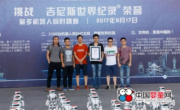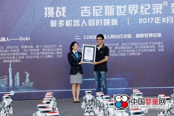 8月17日上午,偉力玩具有限公司在廣州白云國(guó)際會(huì)議中心成功挑戰(zhàn)“最多機(jī)器人同時(shí)跳舞”的吉尼斯世界紀(jì)錄。 在吉尼斯世界紀(jì)錄認(rèn)證官的見(jiàn)證下,伴隨著音樂(lè),偉力玩具帶來(lái)的1100臺(tái)Dobi機(jī)器人(豆比機(jī)器人)同時(shí)起舞,石板磚地面為挑戰(zhàn)增加了不小的難度,期間有31臺(tái)機(jī)器人由于地面不平倒下退出,但最終仍有1069臺(tái)機(jī)器人堅(jiān)持到最后,打破了此前1007臺(tái)機(jī)器人同時(shí)跳舞的紀(jì)錄,一項(xiàng)全新的吉尼斯世界紀(jì)錄也就此誕生。