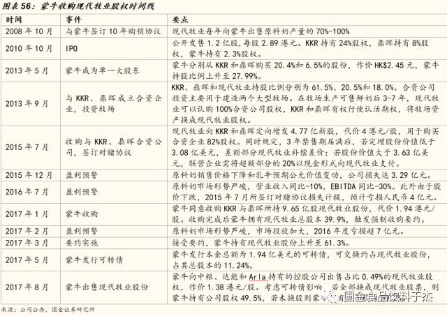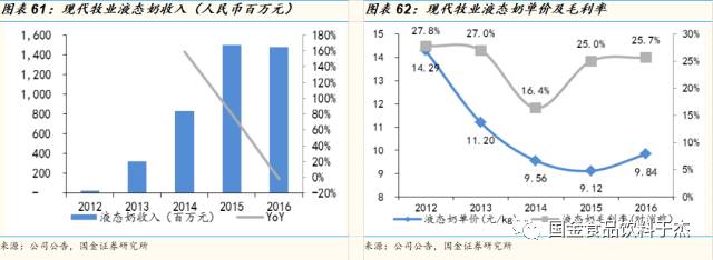 (2) 提升經營效率,降本增效,加強利潤水平 ▪ 公司將集中招投標,盡快規(guī)范中央招投標操作,致力于節(jié)省費用; ▪ 借用達能和Arla的經驗,在各事業(yè)部單元提升供應鏈效率,控制成本; ▪ 對標同行,提升生產端的效率。 (3) 更有效利用國內外上游資源 ▪ 集中采購原奶和大包粉; ▪ 國內加強對高質量原奶奶源的控制,以發(fā)展高端UHT奶和低溫奶; ▪ 幫助現代牧業(yè)發(fā)展下游液態(tài)奶業(yè)務,從而提升蒙牛在中高端市場的市占率; ▪ 站在全球的視角開發(fā)上游原奶資源。 (4) 聚焦明星產品,推動各個品類的產品升級 ▪ 品牌建設:加強與國際品牌的合作,提升品牌國際化進程;通過贊助真人秀或者其他高質量娛樂節(jié)目提升品牌知名度; ▪ 研發(fā)與創(chuàng)新:充分利用3大研發(fā)中心,積極地開發(fā)新品、改進老品;注重營養(yǎng)開發(fā),融入產品;通過開發(fā)高附加值的產品,達到持續(xù)健康的發(fā)展; ▪ 梳理產品線:制定高端化產品策略;聚焦明星產品,最優(yōu)化產品組合。 (5) 推行“深度分銷”策略,加強渠道中的競爭力 公司將致力于把各區(qū)域子公司轉變?yōu)槔麧欀行,增強任責機制和管理體系;同時穩(wěn)定經銷商體系,發(fā)展直銷以加強對終端市場的控制能力。具體措施包括:平衡經銷商、銷售公司和事業(yè)部; ▪ 進一步下沉至下線城市; ▪ 通過大數據采集、差異化市場策略以及和零售商合作,增強對KA的管理; ▪ 注重便利店、校園、餐飲以及電商等特殊渠道的開發(fā); ▪ 加強對電商平臺的建設,保持領先地位等。 我們認為蒙牛改革效用明顯,今年乳制品行業(yè)增速主要集中于三四級及農村城市消費的升級,而公司在此層級的渠道效率不如伊利。蒙牛在去年高基數、大區(qū)經理更迭以及減少基礎白奶的促銷的大背景下,17H1 依然能維持 8% 的收入增速,進一步說明了聚焦高端品、提升供應鏈效率以及提升利潤率改革成果的顯著。我們看好蒙牛改革的持續(xù)推進所帶來的體制效率的提升,隨著旗下現代牧業(yè)和雅士利的重新布局,蒙牛有望進一步拉進和伊利的差距。 現代牧業(yè):增強上游原奶供應協(xié)同效應,蒙牛欲進軍巴氏奶業(yè)務 截至目前,若不考慮可轉債影響,蒙牛持有現代牧業(yè) 60.8% 的股權。截至今年上半年現代牧業(yè)共運營 26 個牧場,奶牛 22.3 萬頭。2016 年全年原奶外銷總量 85.5 萬噸,收入占比達 69.6%,其中超 70% 的外銷原奶供給蒙牛。今年上半年現代牧業(yè)虧損 6.66 億元,虧損幅度較去年同期繼續(xù)擴大,主要是由于:(1)原奶價格同比下滑 11%,(2)蒙牛強制要約、注銷尚未實行股權以及管理層股權產生虧損;(3)應收賬款的壞賬撥備。