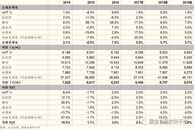 截至今年上半年,蒙牛收入增速中約 6% 的增長來源于銷售量,2% 的增長來源于均價提升,隨著 Q3 更多新品的推出,管理層預計 2017 年全年收入依然能夠保持高個位數的增長。其中產品均價的提升主要來源于明星產品占比的提升,公司今年銷售費用投放的重點集中于特侖蘇、純甄以及真果粒等明星產品,上半年這三種產品的銷售額分別同比 +10% / +35% / +25% 。而 UHT 奶增速的下滑主要受中低檔產品的拖累,主要是由于今年公司原奶端庫存壓力小,對于此檔產品的促銷營銷相應減少,產品培育重點轉向高端 UHT 產品。