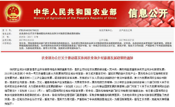 休閑農(nóng)業(yè)和鄉(xiāng)村旅游是農(nóng)業(yè)供給側(cè)結(jié)構(gòu)性改革的重要內(nèi)容,是農(nóng)業(yè)農(nóng)村經(jīng)濟(jì)發(fā)展的新動(dòng)能。黨中央、國(guó)務(wù)院高度重視休閑農(nóng)業(yè)和鄉(xiāng)村旅游發(fā)展,2015年以來(lái)連續(xù)3個(gè)中央一號(hào)文件都提出要大力發(fā)展休閑農(nóng)業(yè)和鄉(xiāng)村旅游,使之成為繁榮農(nóng)村、富裕農(nóng)民的新興支柱產(chǎn)業(yè)。國(guó)務(wù)院辦公廳在加快轉(zhuǎn)變農(nóng)業(yè)發(fā)展方式、推進(jìn)農(nóng)村一二三產(chǎn)業(yè)融合發(fā)展、促進(jìn)旅游投資和消費(fèi)、支持返鄉(xiāng)下鄉(xiāng)人員創(chuàng)業(yè)創(chuàng)新的四個(gè)意見(jiàn)中都強(qiáng)調(diào),要大力發(fā)展休閑農(nóng)業(yè)和鄉(xiāng)村旅游,推進(jìn)農(nóng)業(yè)與旅游、教育、文化、健康養(yǎng)老等產(chǎn)業(yè)深度融合。為貫徹黨中央、國(guó)務(wù)院的文件精神,2015年農(nóng)業(yè)部聯(lián)合財(cái)政部等11個(gè)部門(mén)印發(fā)《關(guān)于積極開(kāi)發(fā)農(nóng)業(yè)多種功能 大力促進(jìn)休閑農(nóng)業(yè)發(fā)展的通知》(農(nóng)加發(fā)〔2015〕5號(hào)),2016年聯(lián)合國(guó)家發(fā)展改革委等14部門(mén)印發(fā)了《關(guān)于大力發(fā)展休閑農(nóng)業(yè)的指導(dǎo)意見(jiàn)》(農(nóng)加發(fā)〔2016〕3號(hào)),指導(dǎo)全國(guó)休閑農(nóng)業(yè)和鄉(xiāng)村旅游發(fā)展。黨中央、國(guó)務(wù)院和相關(guān)部門(mén)的文件和意見(jiàn)的相繼出臺(tái),標(biāo)志著全國(guó)休閑農(nóng)業(yè)和鄉(xiāng)村旅游政策體系框架的形成。近年來(lái),各級(jí)休閑農(nóng)業(yè)管理部門(mén)高度重視,采取多種措施推動(dòng)政策落實(shí),為本地休閑農(nóng)業(yè)和鄉(xiāng)村旅游發(fā)展?fàn)I造了良好環(huán)境。但一些地方仍存在認(rèn)識(shí)不足、重視不夠、落實(shí)不力等問(wèn)題,嚴(yán)重影響了中央政策的落地生效。為督促政策落實(shí),指導(dǎo)工作開(kāi)展,現(xiàn)就有關(guān)事項(xiàng)通知如下。 一、充分認(rèn)識(shí)落實(shí)政策的重要意義 黨中央、國(guó)務(wù)院和多個(gè)部門(mén)出臺(tái)的休閑農(nóng)業(yè)和鄉(xiāng)村旅游政策措施,具有很強(qiáng)的指向性、針對(duì)性和操作性,是今后一個(gè)時(shí)期指導(dǎo)各地產(chǎn)業(yè)發(fā)展的重要政策性文件。貫徹落實(shí)好這些文件中規(guī)定的一系列政策措施,對(duì)于促進(jìn)引導(dǎo)休閑農(nóng)業(yè)和鄉(xiāng)村旅游持續(xù)健康發(fā)展,加快培育農(nóng)業(yè)農(nóng)村經(jīng)濟(jì)發(fā)展新動(dòng)能,壯大新產(chǎn)業(yè)新業(yè)態(tài)新模式,推進(jìn)農(nóng)村一二三產(chǎn)業(yè)融合發(fā)展,深入推進(jìn)農(nóng)業(yè)供給側(cè)結(jié)構(gòu)性改革,實(shí)現(xiàn)農(nóng)業(yè)增效、農(nóng)民增收、農(nóng)村增綠具有十分重要的意義。各級(jí)休閑農(nóng)業(yè)管理部門(mén)要進(jìn)一步統(tǒng)一思想,提高認(rèn)識(shí),結(jié)合本地實(shí)際盡快制定具體實(shí)施意見(jiàn),切實(shí)推動(dòng)政策貫徹落實(shí)。 二、認(rèn)真推動(dòng)政策落實(shí) 各級(jí)休閑農(nóng)業(yè)管理部門(mén)要加強(qiáng)溝通協(xié)調(diào),進(jìn)一步將政策細(xì)化實(shí)化,切實(shí)提高政策的精準(zhǔn)性、指向性和可操作性,推動(dòng)各項(xiàng)政策落地生根,促進(jìn)休閑農(nóng)業(yè)和鄉(xiāng)村旅游業(yè)態(tài)多樣化、產(chǎn)業(yè)集聚化、主體多元化、設(shè)施現(xiàn)代化、服務(wù)規(guī)范化和發(fā)展綠色化。 在用地政策上,要落實(shí)城鄉(xiāng)建設(shè)用地增減掛鉤試點(diǎn),農(nóng)村集體經(jīng)濟(jì)建設(shè)用地自辦、入股等方式經(jīng)營(yíng)休閑農(nóng)業(yè)的政策。要積極向當(dāng)?shù)卣畢R報(bào),爭(zhēng)取將休閑農(nóng)業(yè)和鄉(xiāng)村旅游項(xiàng)目建設(shè)用地納入土地利用總體規(guī)劃和年度計(jì)劃合理安排。要支持有條件的地方通過(guò)盤(pán)活農(nóng)村閑置房屋、集體建設(shè)用地、“四荒地”、可用林場(chǎng)和水面等資產(chǎn)資源發(fā)展休閑農(nóng)業(yè)和鄉(xiāng)村旅游。 在財(cái)政政策上,要鼓勵(lì)各地整合財(cái)政資金,將中央有關(guān)鄉(xiāng)村建設(shè)資金向休閑農(nóng)業(yè)集聚區(qū)傾斜。要探索采取以獎(jiǎng)代補(bǔ)、先建后補(bǔ)、財(cái)政貼息、設(shè)立產(chǎn)業(yè)投資基金等方式加大財(cái)政扶持力度。要?jiǎng)?chuàng)新融資模式,鼓勵(lì)利用PPP模式、眾籌模式、互聯(lián)網(wǎng)+模式、發(fā)行私募債券等方式,引導(dǎo)社會(huì)各類(lèi)資本投資休閑農(nóng)業(yè)和鄉(xiāng)村旅游。 在金融政策上,要?jiǎng)?chuàng)新?lián)7绞剑罱ㄣy企對(duì)接平臺(tái),鼓勵(lì)擔(dān)保機(jī)構(gòu)加大對(duì)休閑農(nóng)業(yè)和鄉(xiāng)村旅游的支持力度,幫助經(jīng)營(yíng)主體解決融資難題。要推動(dòng)銀行業(yè)金融機(jī)構(gòu)拓寬抵押擔(dān)保物范圍,擴(kuò)大信貸額度,加大對(duì)休閑農(nóng)業(yè)的信貸支持,帶動(dòng)更多的社會(huì)資本投資休閑農(nóng)業(yè)和鄉(xiāng)村旅游。 在公共服務(wù)上,要從規(guī)劃引導(dǎo)入手,積極推