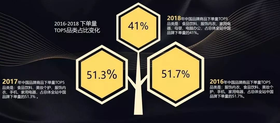 -2017年中國品牌商品的下單商品銷量同比增幅高出國際品牌7%,2018年中國品牌商品的下單商品銷量同比增幅高出國際品牌8%。