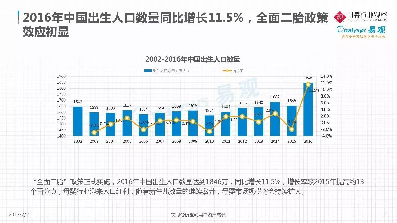 二孩政策效應釋放,母嬰市場規模持續攀升,母嬰人群需求如何更好的被滿足?萬億母嬰市場,企業如何抓住機會?大數據帶你解讀母嬰人群和、市場現狀及企業布局重點。 互聯網母嬰市場現狀及發展方向 1、人口紅利