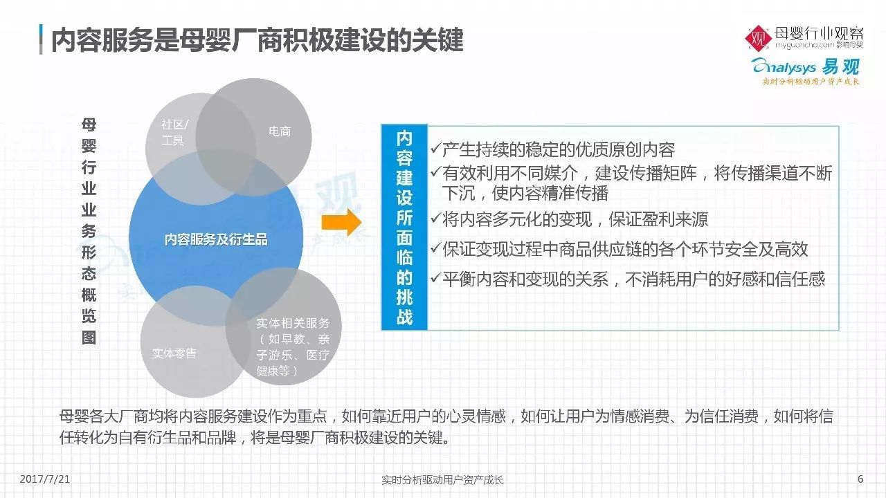 我們對整個產業鏈進行了梳理,母嬰產業鏈現在是一個融合整合的過程,不管是從品牌、渠道還是線下服務,包括社區以及工具,各個環節都在進行融合發展。線上線下的結合包括在商業變現上做了很多的探索,未來我們認為基于寶寶這一個點往更深的比如家庭消費這塊包括孩子的教育,甚醫療娛樂,都可能成為非常龐大的需求點,值得大家關注。 5、內容服務,信任是關鍵