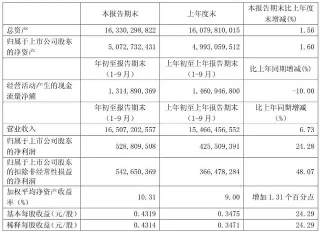 麥趣爾前三季度營(yíng)業(yè)收入為41.7億元,同比下降1.68%;實(shí)現(xiàn)歸屬于上市公司股東的凈利潤(rùn)為2348.7萬元,同比下降49.02%。 三元 三元股份(600429)發(fā)布2017年三季報(bào),財(cái)報(bào)顯示,1-9月,公司實(shí)現(xiàn)營(yíng)業(yè)收入46.86億元,同比增長(zhǎng)8.23%;食品加工制造行業(yè)平均營(yíng)業(yè)收入增長(zhǎng)率為16.32%;歸屬于上市公司股東的凈利潤(rùn)1.23億元,同比下降41.21%;歸屬于上市公司股東扣非的凈利潤(rùn)為6975.18萬元,同比增長(zhǎng)食品加工制造行業(yè)平均凈利潤(rùn)增長(zhǎng)率為19.99%,公司每股收益為0.08元。
