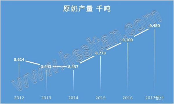 加拿大由于對乳制品采取高昂收儲支撐價(jià)格,使得國內(nèi)乳品價(jià)格遠(yuǎn)高于國際市場。脫脂奶粉國家收儲價(jià)格1.51美元/磅(折合人民幣4.75元/千克)而新西蘭的離岸價(jià)僅為1.07美元/磅(折合人民幣 3.35元/千克)。盡管如此,加拿大國內(nèi)的幾乎所有乳制品都是國內(nèi)奶源制成的,且原料牛奶價(jià)格很高。究竟是什么原因?qū)е录幽么竽虡I(yè)沒有被國際市場沖擊呢?荷斯坦雜志將其歸納為三點(diǎn):1.配額制度保障原奶供給且不會過剩;2.對進(jìn)口乳制品征收重稅,并對出口乳制品給予高額補(bǔ)貼,通過全面貿(mào)易保護(hù)國內(nèi)乳制品。3.通過詳細(xì)的牛奶分級,詳細(xì)規(guī)定各類乳制品需要何種原料奶,遏制各類進(jìn)口乳原料成分的生存空間。盡管,這樣的貿(mào)易保護(hù)主義會受到WTO的警告和限制,但是加拿大一直通過不斷修改規(guī)定來與WTO周旋,多年以來始終堅(jiān)定地維護(hù)著奶農(nóng)的利益,非常值得擁有類似情況的中國學(xué)習(xí)。 國內(nèi)市場需求強(qiáng)勁,國內(nèi)原奶供給穩(wěn)定攀升 由于國內(nèi)對市場需求強(qiáng)勁,尤其是國產(chǎn)品牌的黃油及乳脂類產(chǎn)品,加拿大牛奶產(chǎn)量在2016年增長了5%,達(dá)到910萬噸。這種對乳脂的較高的需求將會進(jìn)一步導(dǎo)致2017年牛奶產(chǎn)量的提升。預(yù)計(jì)2017年加拿大還會增產(chǎn)4%,達(dá)到950萬噸。