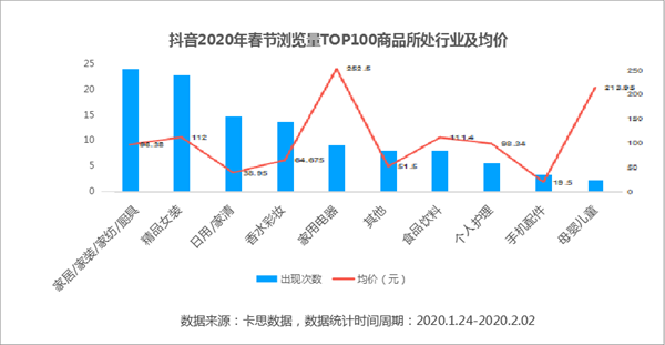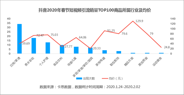 春節抖音、快手銷量TOP100產品分析 抖音已經成為了用戶購買“戰疫”物資的重要渠道。 整個春節期間,隨著疫情的不斷發酵,以殺菌、消毒為主的日用/家清類產品成為了搶手貨,在抖音春節銷量TOP100產品中,上榜的日用/家清類產品就有34件。其中,日用類產品以口罩、分裝瓶和消毒紙巾/棉片最為典型;而家清類產品則以消毒水/液、洗手液等最為常見。在用戶消費的品牌中,威露士出現最多,占比34款產品的5席,另外,還有滴露、植護等品牌較多出現,可見:在面對疫情的消毒防護中,抖音用戶對專業品牌的信賴度更強。 值得一提的是:在母嬰/兒童類目中,針對嬰幼兒的清潔洗護類產品也頻頻上榜,部分日用/家清類產品也特別標明嬰幼兒可用字樣。在疫情面前,寶爸寶媽們除了認真做好自身防護外,尤為注重寶寶的健康,而相關產品對特殊人群的需求把控也極為精準。 在卡思數據收集到的抖音春節銷量TOP100中,除了日用/家清類產品外,香水彩妝、個人護理類產品也出現較多,這與抖音用戶結構:女性偏多不無關系。也說明:愛美、愛購物是女孩子的天性,哪怕是天天穿著睡袍宅在家里,也不忘隨時買買買,短視頻曝光-轉化的距離正在縮短,短視頻賦能引流端的價值在提升,用戶的消費習慣在形成。 而從入榜的11類產品類目均價來看,精品女裝類價格最高,是唯一單價過百商品,且銷量超3萬單。除女裝類產品外,其他商品均價都在百元以內,可見低價仍是產品高銷的重要一環。 據火星營銷研究院對銷量TOP100商品10日里的均銷售增量來看,日用/家清類產品均銷售增量位居第2,34款產品10天里的均銷售增量達到2.7萬+單,用戶為抵御疫情,在此類產品上的投入可謂不遺余力。