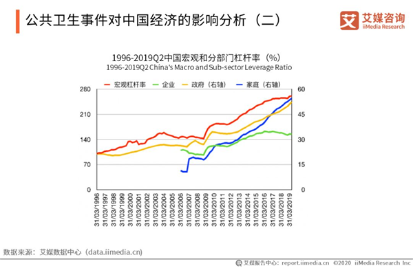 行業(yè)趨勢分析(節(jié)選): 公共衛(wèi)生事件對中國經(jīng)濟(jì)的影響分析(二) 相對于2003年,宏觀杠桿率、非金融企業(yè)、家庭、政府的杠桿率都已大幅上升。艾媒咨詢分析師認(rèn)為,杠桿率的上升,除了會增加企業(yè)在疫情期間的利息成本、破產(chǎn)風(fēng)險(xiǎn),還會降低疫情結(jié)束后企業(yè)和個(gè)人借貸進(jìn)行消費(fèi)和投資的能力和意愿。這兩者會擴(kuò)大疫情對經(jīng)濟(jì)的短期沖擊、也會減緩疫后的經(jīng)濟(jì)恢復(fù)。