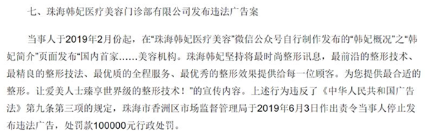⊙ 違法案例5-奕彩紙塑包裝廠:印制國家領導人卡通圖像 2019年,廣東潮州市奕彩紙塑包裝廠因印制帶有國家領導人卡通圖像的奶茶封口膜,用于其經營的奶茶店和加盟店,且廣告印制量多,散布廣,造成了不良的社會影響,被罰款80萬元。 二、包含“首/家/國”及相關詞語 5 首個、首選、全球首發、全國首家、全網首發、首款、首家、獨家、獨家配方、全國銷量冠軍、國家級產品、國家(國家免檢)、國家領導人、填補國內空白等用語。 ⊙ 違法案例6-韓妃醫療美容門診:使用絕對化用語 2019年,珠海韓妃醫療美容門診部有限公司發布包含“國內首家”、“最前沿的整形技術、最精良的整形技法、最優秀的整形效果”、“世界級的整形技術”的宣傳內容,被罰款10萬元。