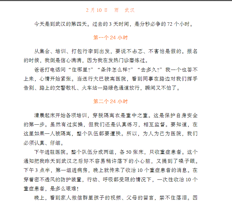 智冠乳業為表達心中對奮戰在抗疫一線的醫護人員的敬意,開展“致敬最美天使,關愛天使寶寶”活動,向奮戰在抗疫一線的醫護人員0-3周歲子女免費提供1年智冠嬰幼兒配方奶粉以實際行動向堅守在抗疫前線的“白衣天使”們致敬。 此次活動已進行了數天,在眾多報名領取奶粉的醫護人員中,我們有幸接觸到來自湘雅醫院(中南大學湘雅醫院,三級甲等)的白衣天使。今天跟大家分享一下他們在武漢的點點滴滴。