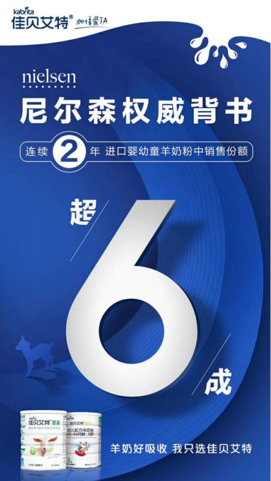 | 尼爾森調研佳貝艾特連續2年份額超6成,領跑羊奶粉市場 |