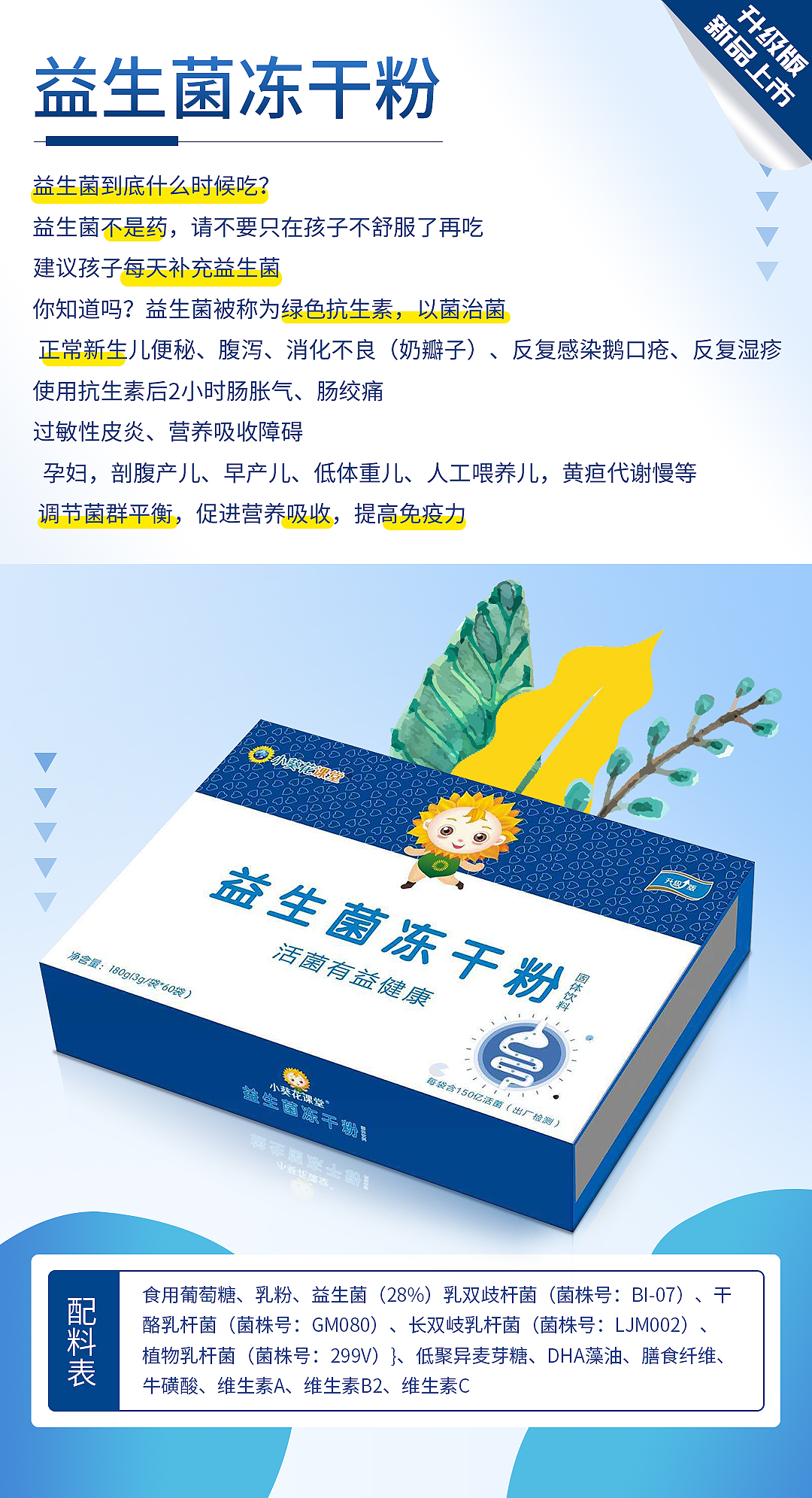 | 小葵花課堂升級版益生菌粉 含150億活性菌更有益健康 |