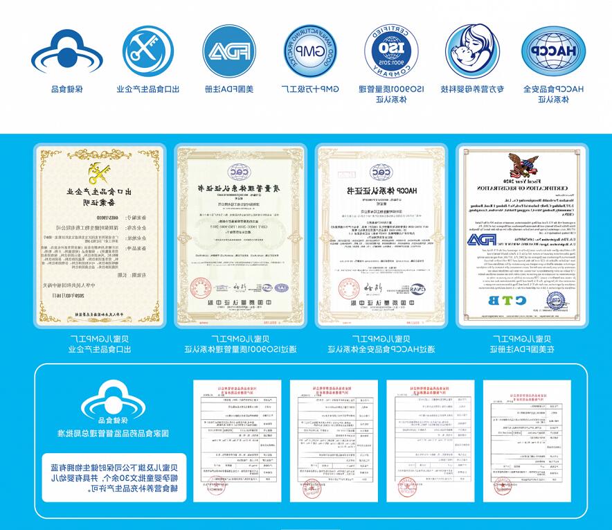 貝蜜兒斥資數千萬元建設的保時健生物,在深圳龍崗高新產業園區建設了GMP十萬級數字化智能透明工廠,GMP萬級研發中心和高級實驗室,并取得保健食品、嬰幼兒特殊膳食生產許可證,通過了CQC(中國質量認證中心)頒發的HACCP食品安全管理體系認證、ISO9001質量管理體系認證,是國家高新技術企業。公司擁有多項發明專利和軟件著作版權,且成功在美國FDA完成注冊,產品出口到美國、歐洲、澳洲及東南亞多國。