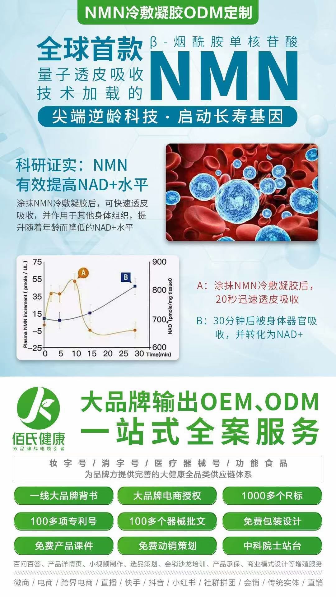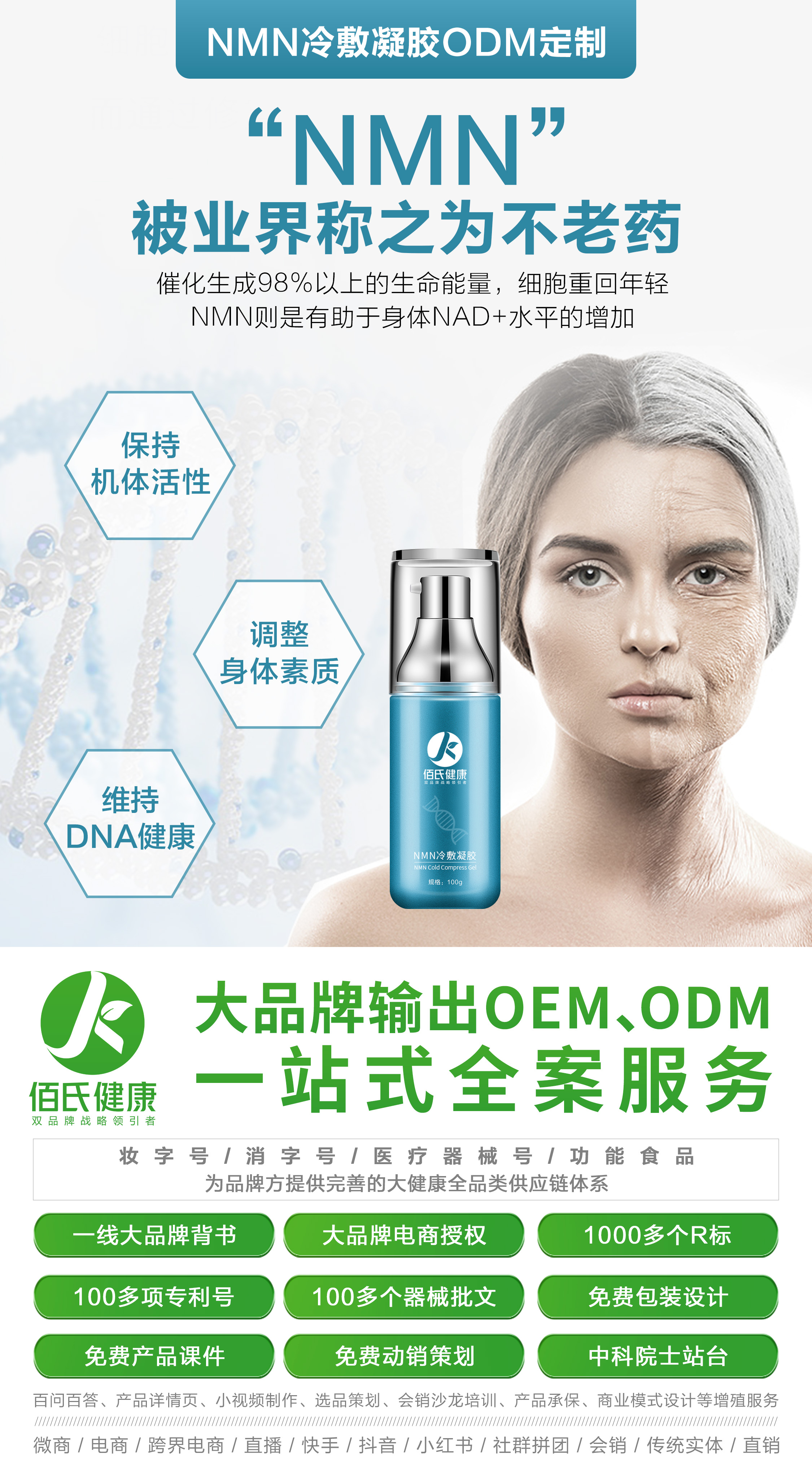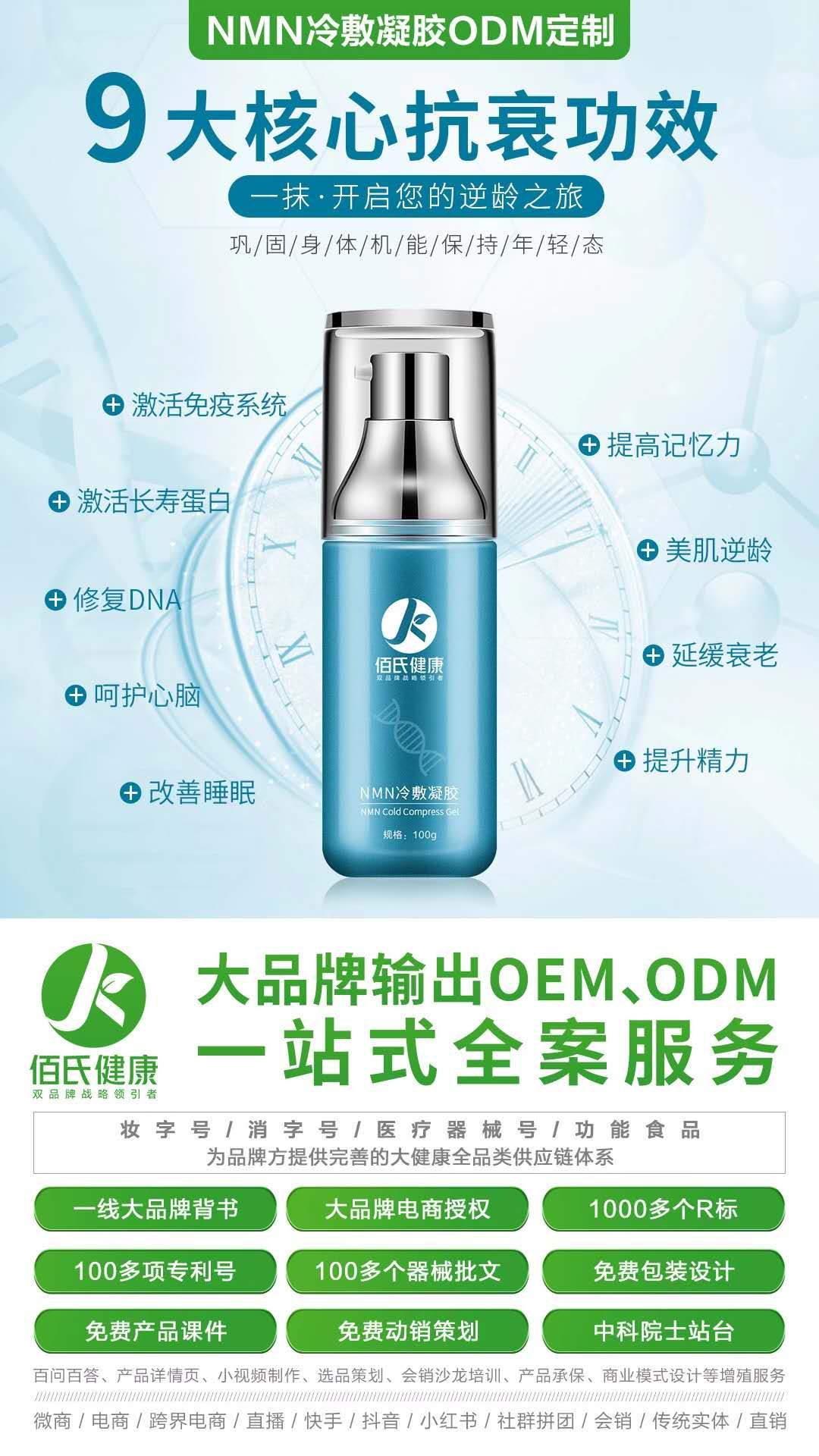 ️中科院獨家首發功效打包裝‼️ ️一抹立竿見影✅ ️中科院獨家條碼搶占市場誰先做誰先贏‼️ ️自家能生產不為他國做嫁衣‼️ 貼牌生產免費寄樣 青春茵子(NMN凝膠) 風靡全球, 它被譽為“凍齡圣藥 ;稱為“不老神藥”。主打抗衰老,延緩衰老,使人變年輕(年輕10-20歲),預防神經疾病和抵御肥胖和糖尿病。 ![]() ![]() ![]() |