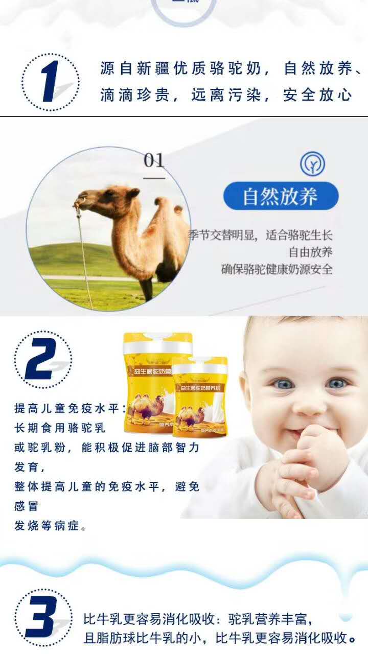 乳糖不耐受人群福音(駱駝不含過(guò)敏源,駝奶乳糖含量極低) ️糖尿病人一定要喝的奶(每毫升富含52個(gè)微單位的胰島素因子) ️有助于小朋友生長(zhǎng)發(fā)育和智力發(fā)育(鈣含量是牛奶的10倍)