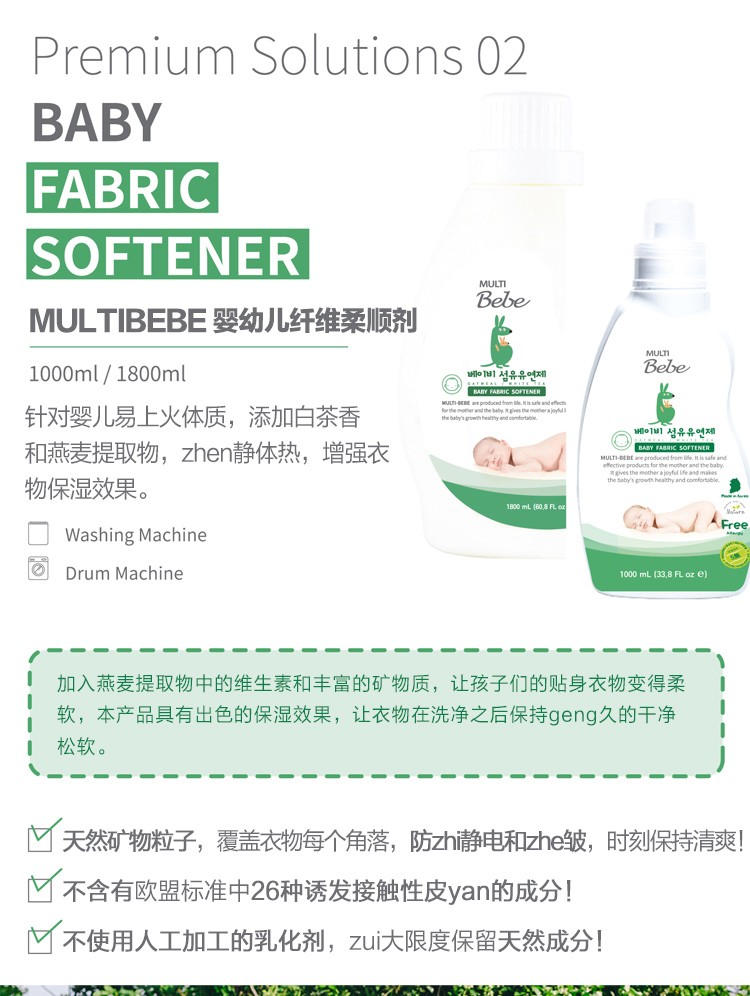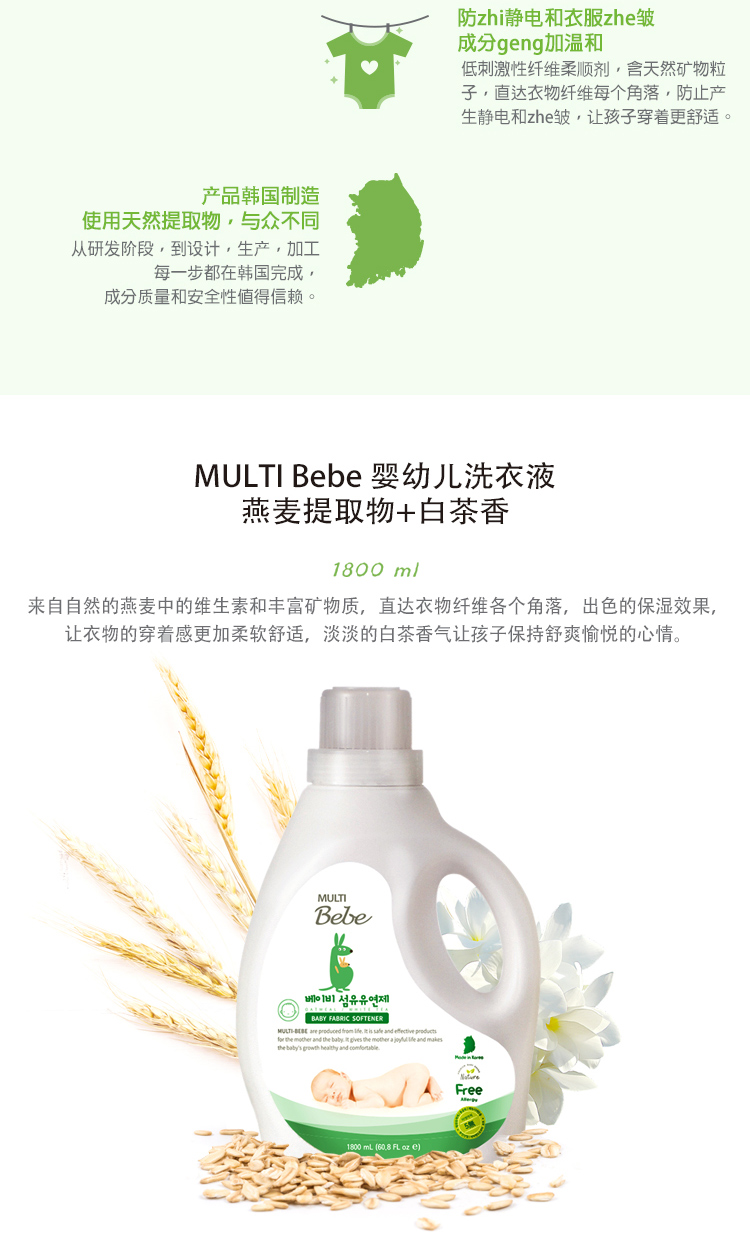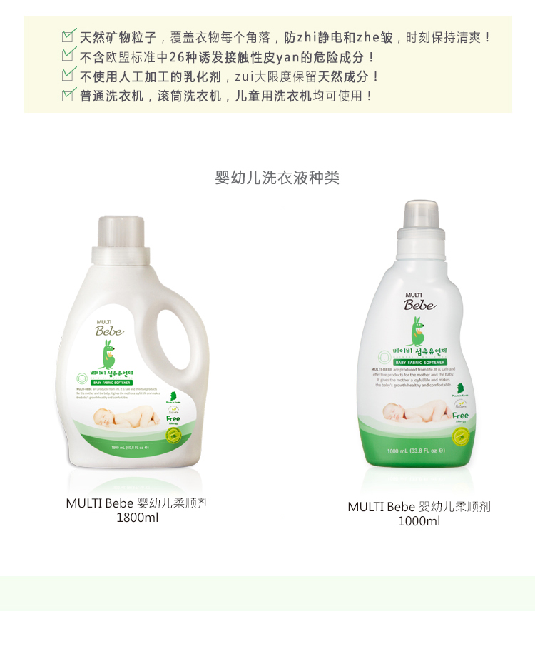 MULTIBebe莫托波比韓國原裝進口嬰幼兒衣物柔順劑1800ml