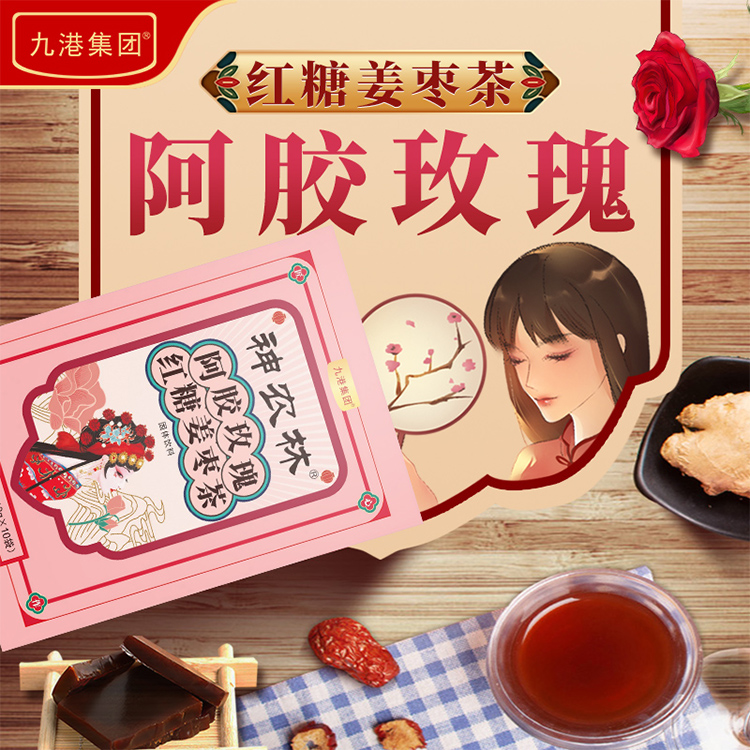 【品 名】阿膠玫瑰紅糖姜棗茶(固體飲料)