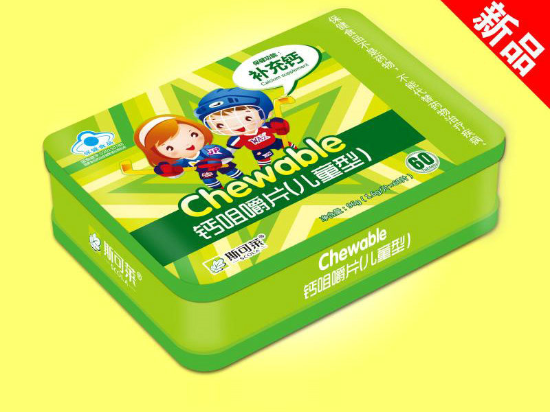 斯可萊藍帽鈣鎂咀嚼片鐵盒